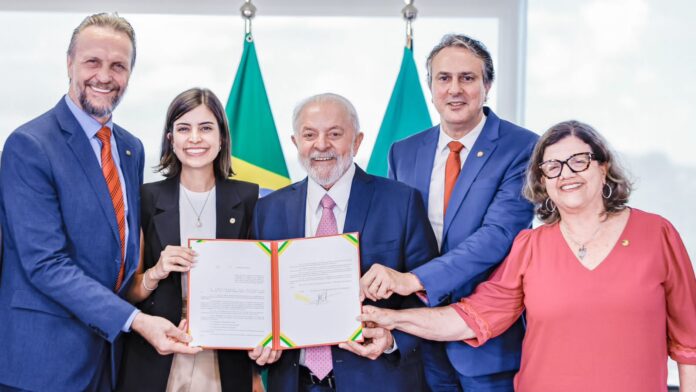 O ministro Camilo Santana (Educação) esteve presente ao evento de sanção no Palácio do Planalto, assim como a senadora Teresa Leitão (PT-PE), relatora do projeto no Senado Federal.