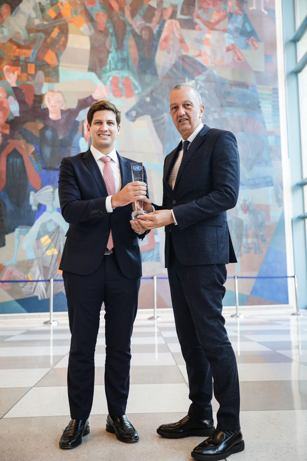O prefeito João Campos (PSB) recebeu o prêmio na sala do Conselho de Segurança da ONU.