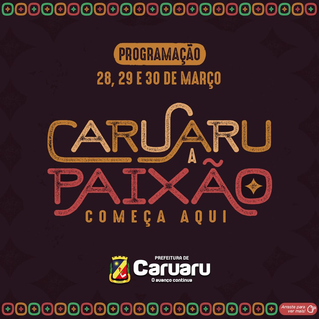 A Prefeitura de Caruaru, por meio da Fundação de Cultura, divulga a programação completa da Semana Santa 2024. Já consolidado no calendário de eventos anuais do município e da região, o Caruaru – A Paixão Começa Aqui será realizado entre os dias 28 e 30 de março.