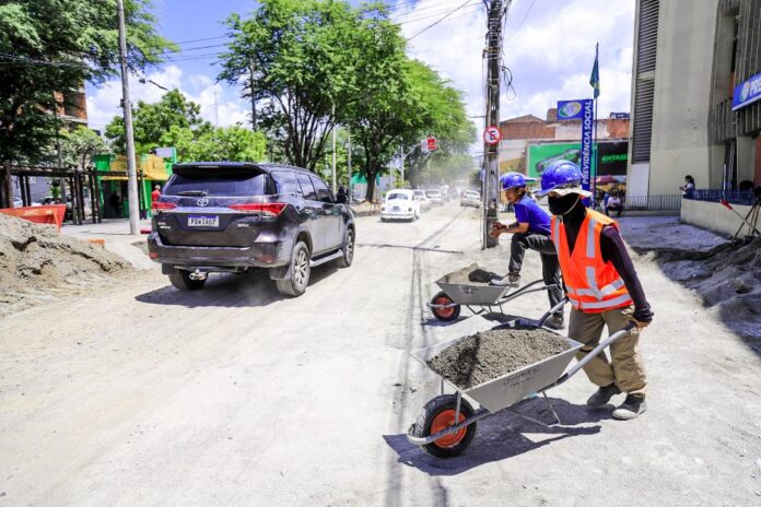 Quem passa nas proximidades da Avenida Rui Barbosa, em Caruaru, tem visto máquinas e muitos homens trabalhando. As intervenções que estão sendo realizadas no local estão relacionadas à implantação do sistema de drenagem na Rua Barão de Triunfo, no Maurício de Nassau. E têm demandado, inclusive, interdições – para minimizar os riscos à pedestres e motoristas.
